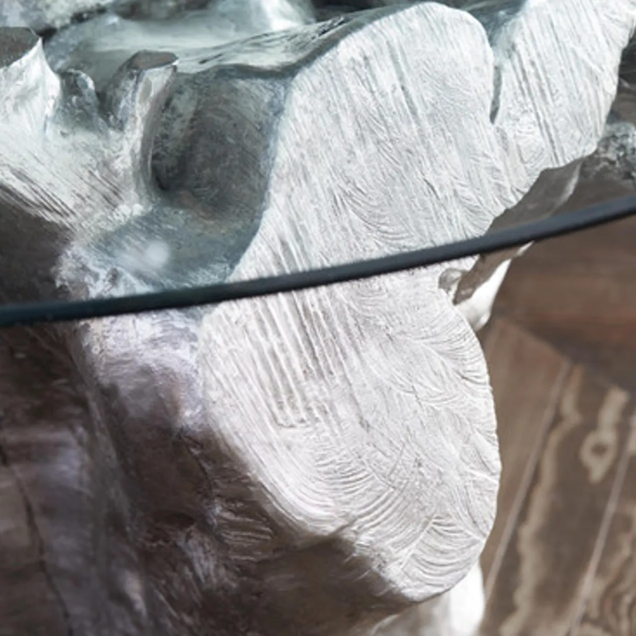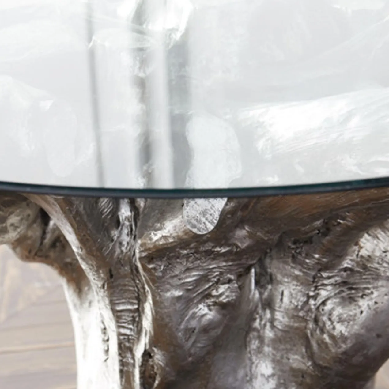 Invite natural looking elements into your home with luminescent Sequoia Dining Table. Carefully cast from the roots of an Acacia tree, our Sequoia Dining Table brings sculptural detailing to its surrounding décor. Moulded out of resin in a multi-step process, our Sequoia Dining Table is finished in silver leafing, giving the table base a subtle luster. A sixty inch round glass table top completes the table, allowing for easy viewing of the stunning organic display below.