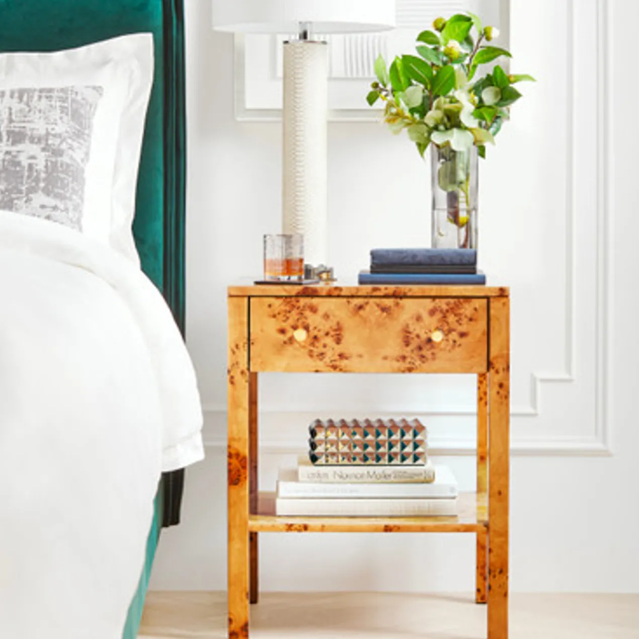 With its studded design and gold finish, this box makes a chic addition to a dresser, vanity, or console.