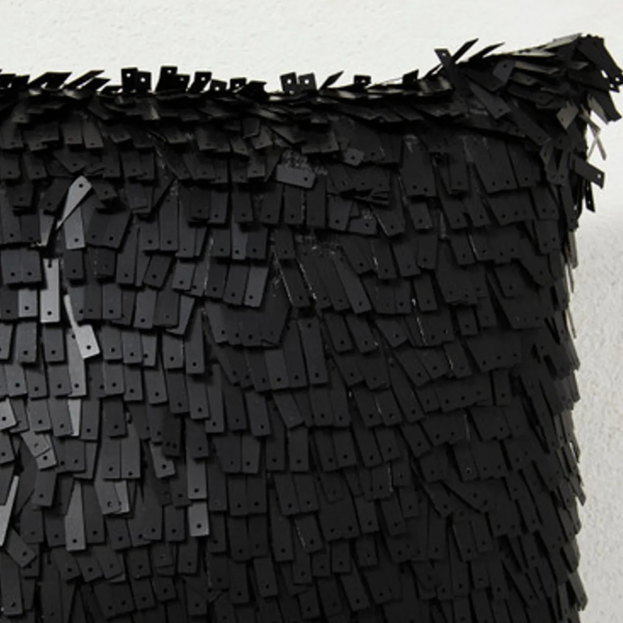 Embellished with matte black sequins, this pillow brings texture and glamour to any room. Solid back. Insert included