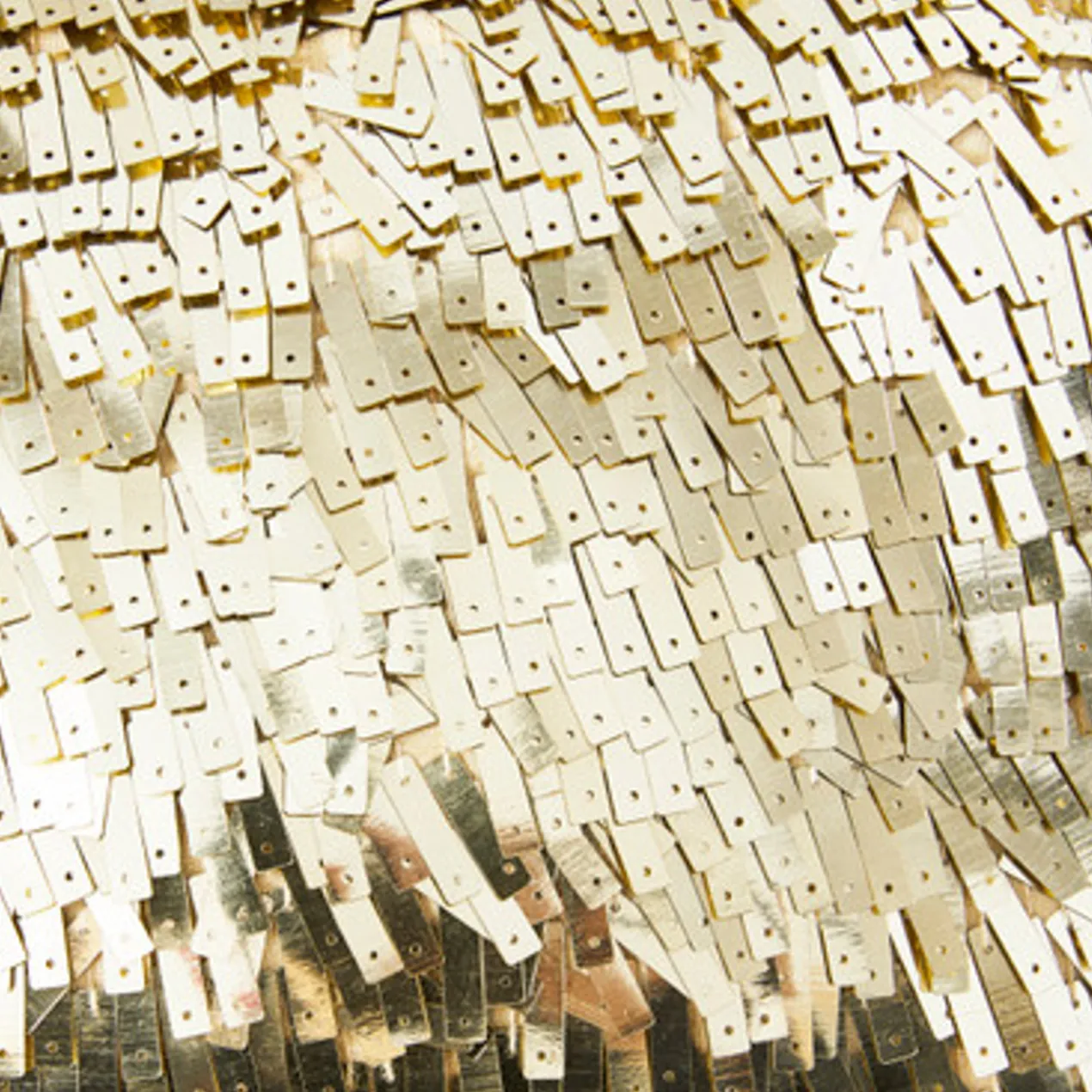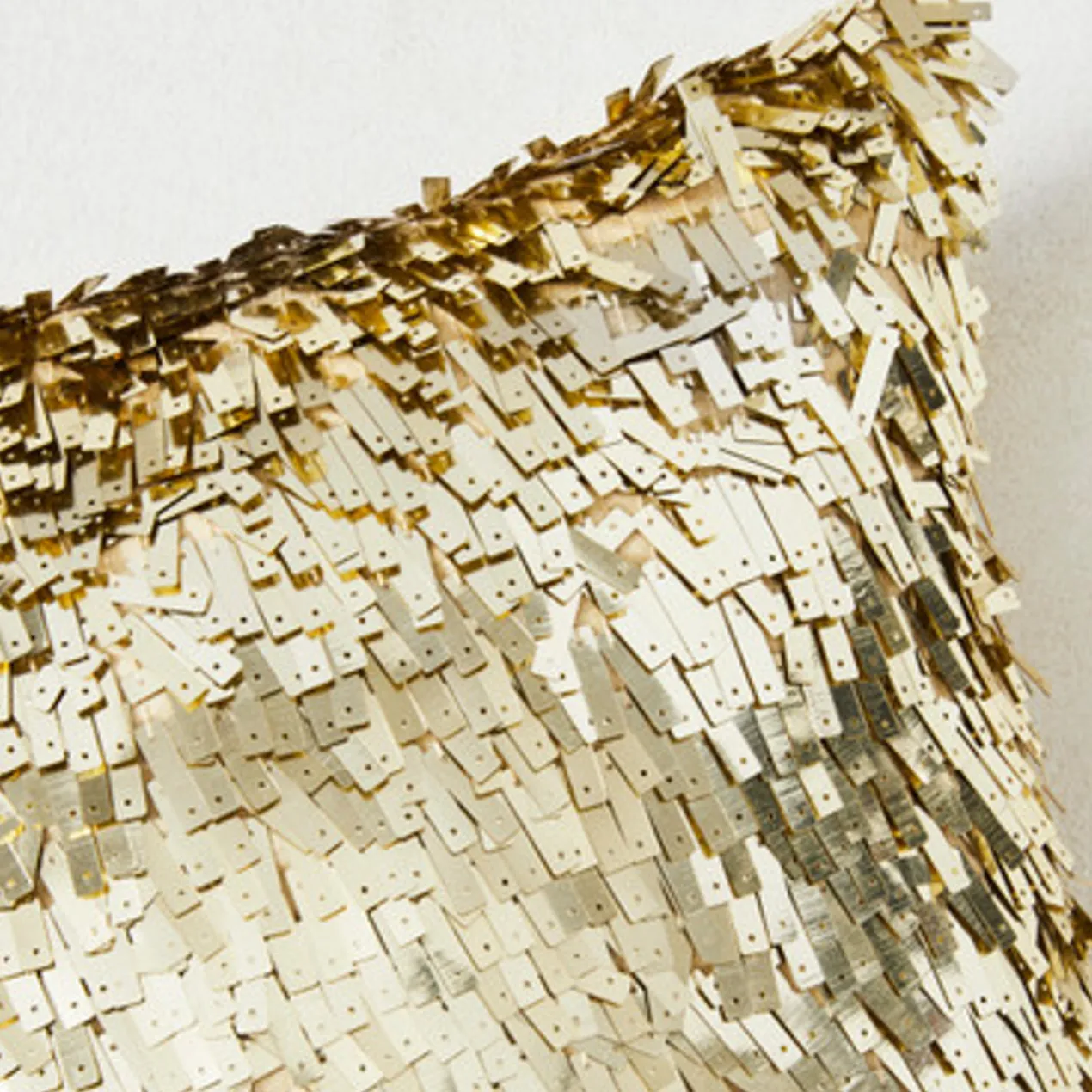 Embellished with shimmering gold sequins, this pillow brings texture and glamour to any room. Solid back. Insert included