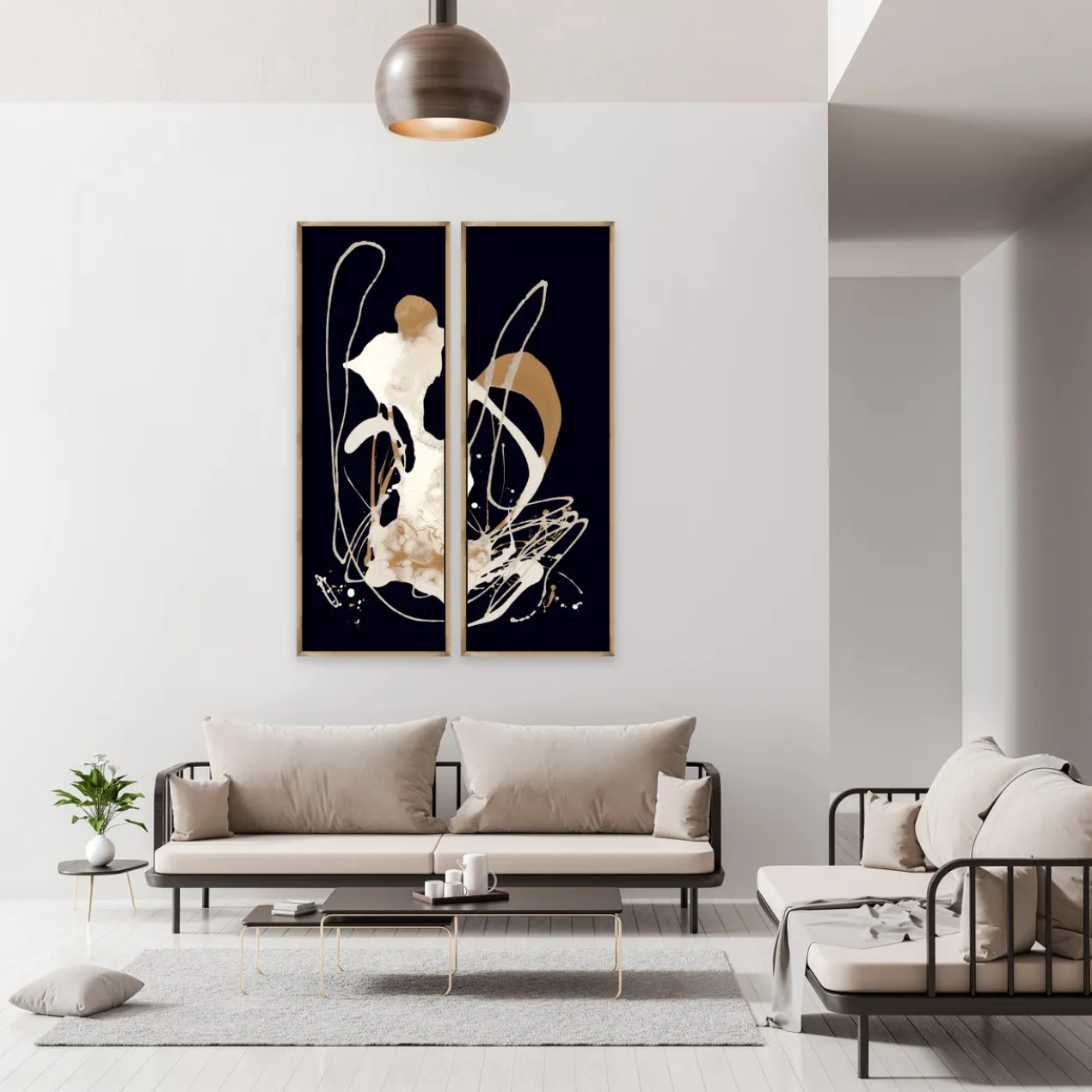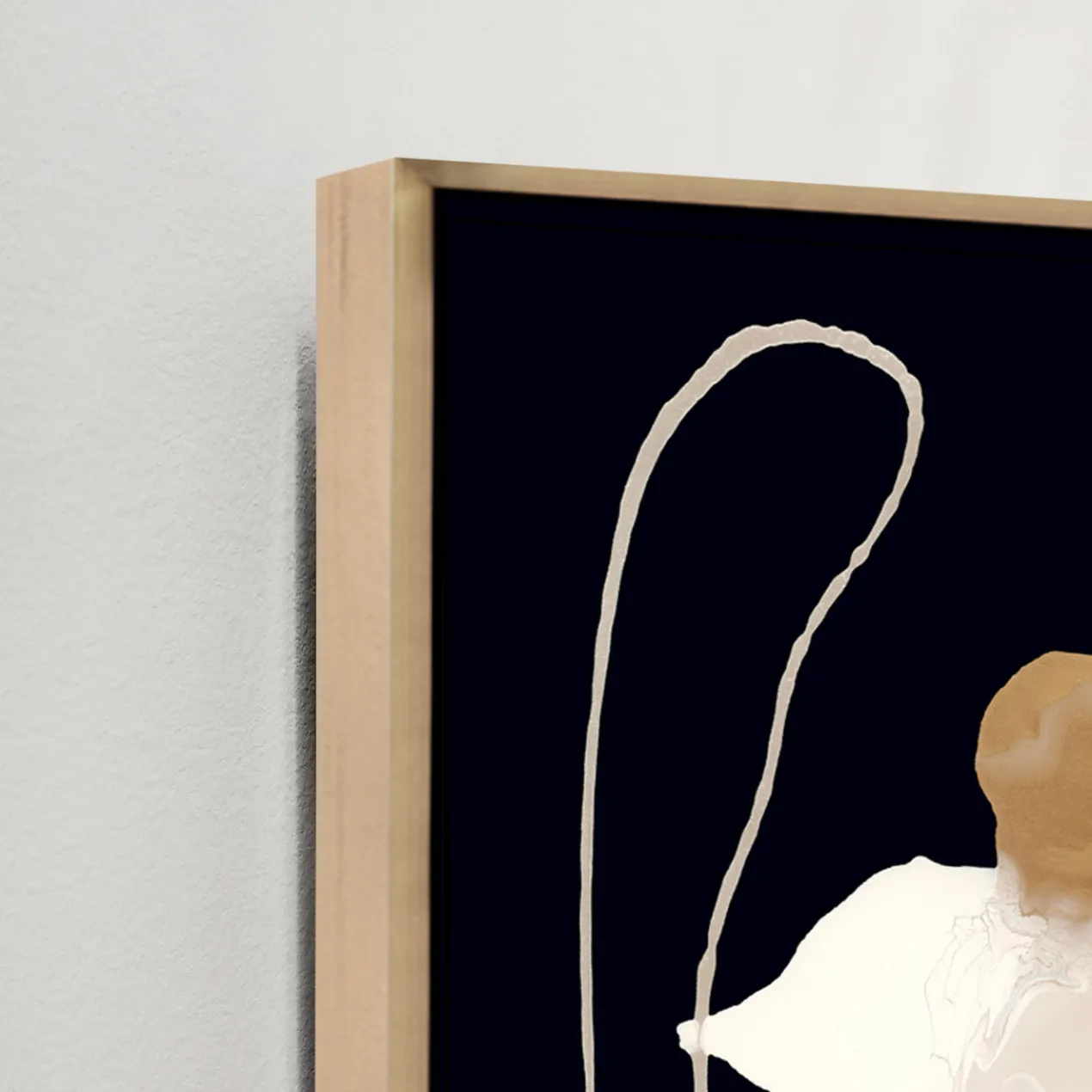 - Set in a gold floater frame.