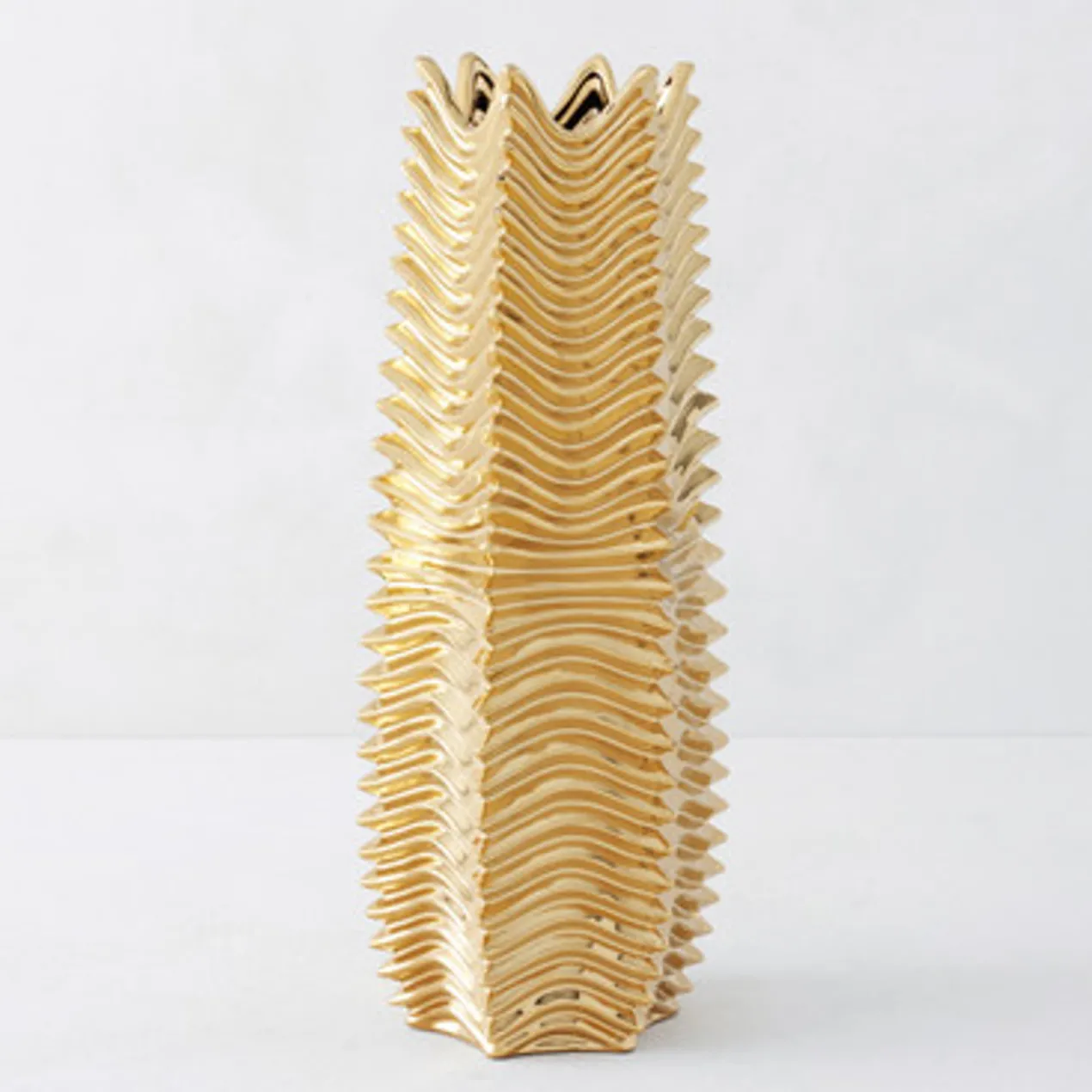 Inspired by life under the sea, our glam Urchin Vase is designed in gold-plated porcelain to boldly hold any blossom.