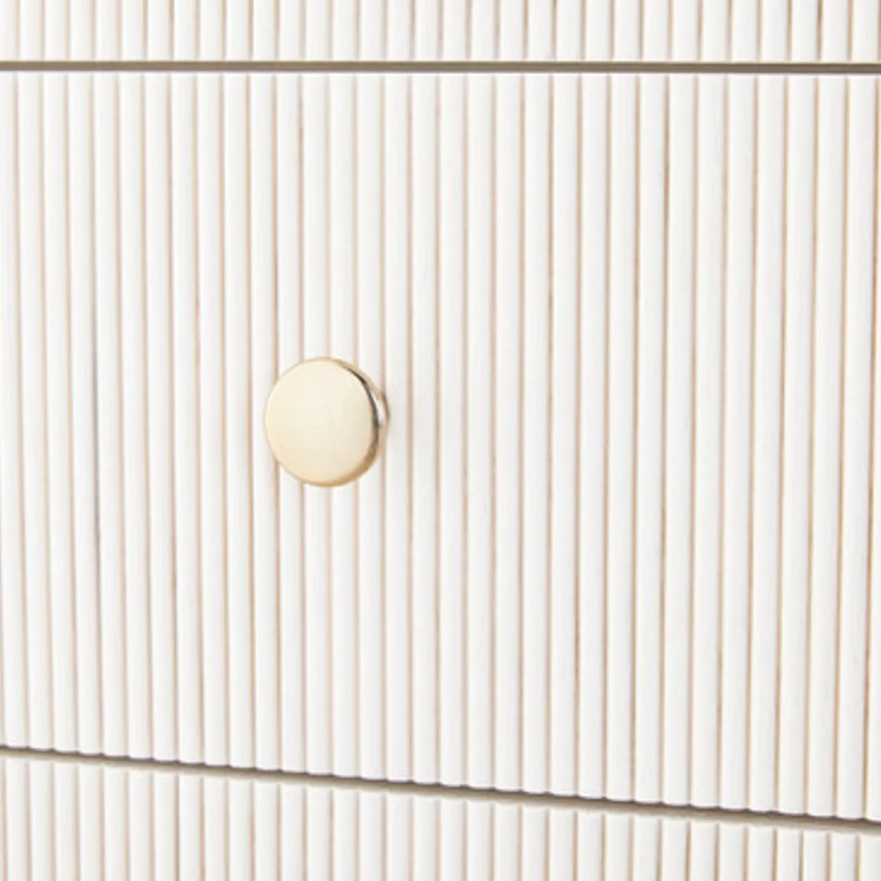 Elevate the style of your bedroom with our Viola nightstand. Featuring a sleek, modern silhouette and unique reeded drawer fronts, this nightstand is sure to catch your eye. The bone white finish and brass hardware add a touch of luxury to the overall design.