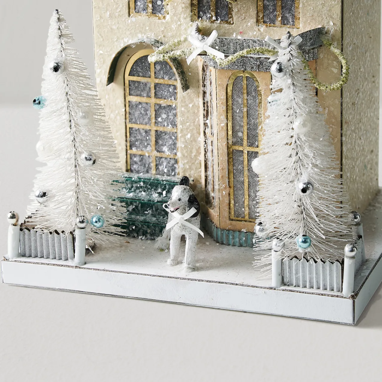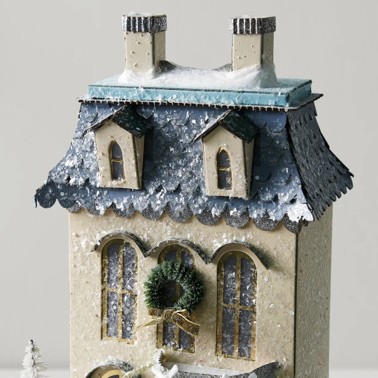 Set the scene with this stunning winter chateau Adorned with glitter and the most perfect details, this house will make the perfect additional to any surface.
