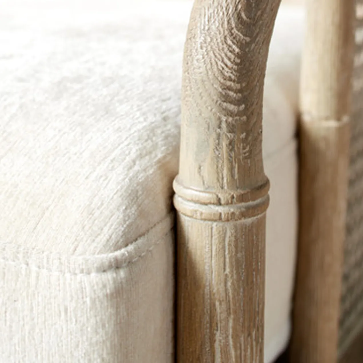 Gently curved arms, stylized carvings, and caning on the back and sides give our Addison accent chair a timeless, elegant look. Crafted of sturdy kiln-dried hardwood and topped with amply padded cushions, this piece is as comfortable as it is stylish. Shown in Kenley Chenille Canvas.