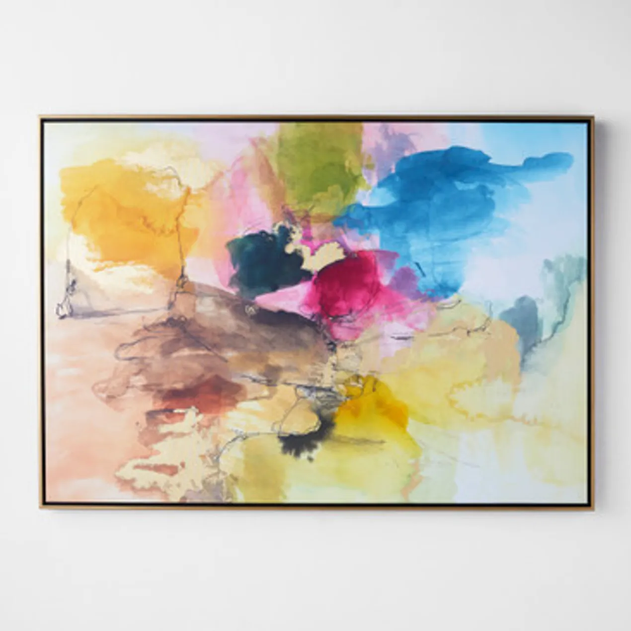 An explosion of color, the Apricity Series is a fabulous way to brighten any room. This piece is created with giclee on canvas, and gold gilding is applied by hand. It is then given an image brush gel finish and set in a gold floater frame. Apricity II is #1 of 2 in a series.