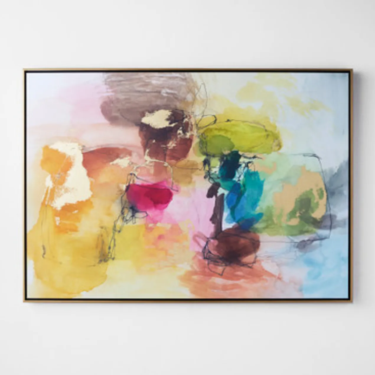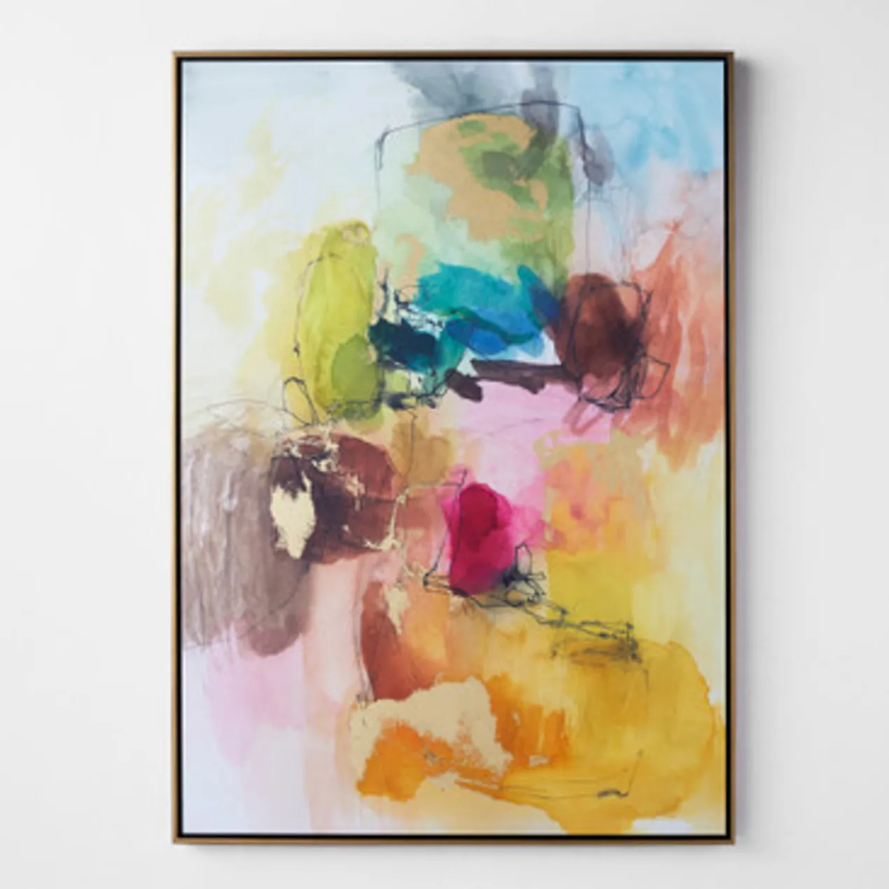 An explosion of color, the Apricity Series is a fabulous way to brighten any room. This piece is created with giclee on canvas, and gold gilding is applied by hand. It is then given an image brush gel finish and set in a gold floater frame. Apricity III is #2 of 2 in a series.