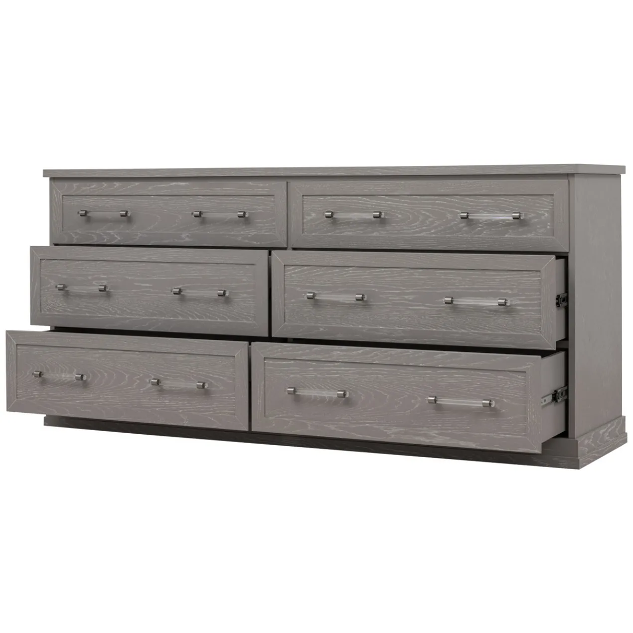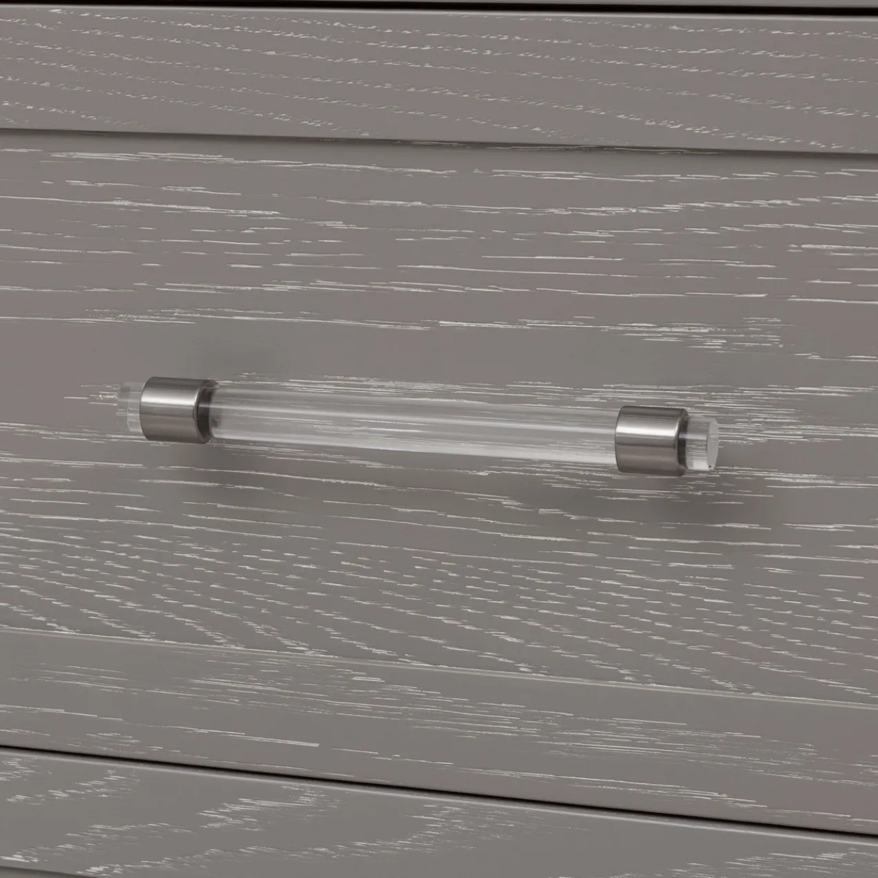 Introducing the Arwin Collection: Elevate your space with the timeless charm of our Arwin Wide Dresser. Meticulously crafted, it seamlessly blends contemporary design with classic appeal. The sophisticated grey finish with exquisite acrylic and brushed silver handles create a focal point of understated luxury. With ample storage and versatile styling, this dresser is not just furniture—it’s an expression of refined elegance. Embrace the fusion of modern design and timeless beauty. The Arwin Wide Dresser will transform your bedroom into a haven of sophistication.