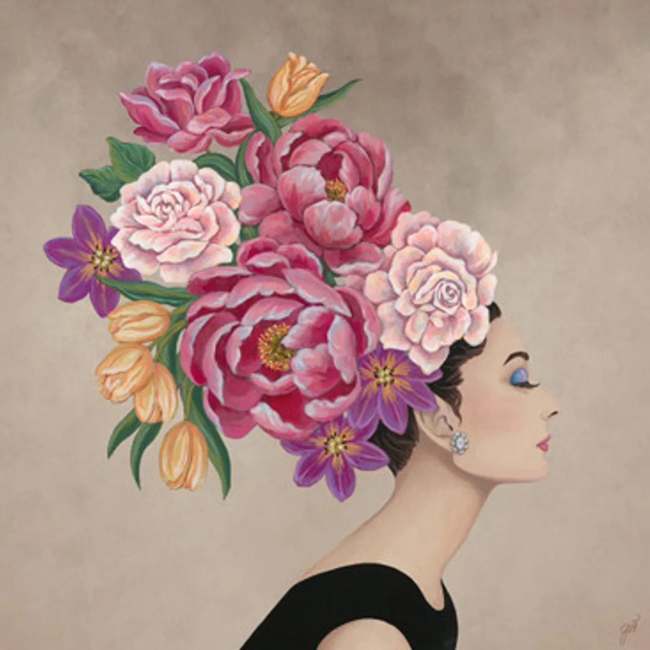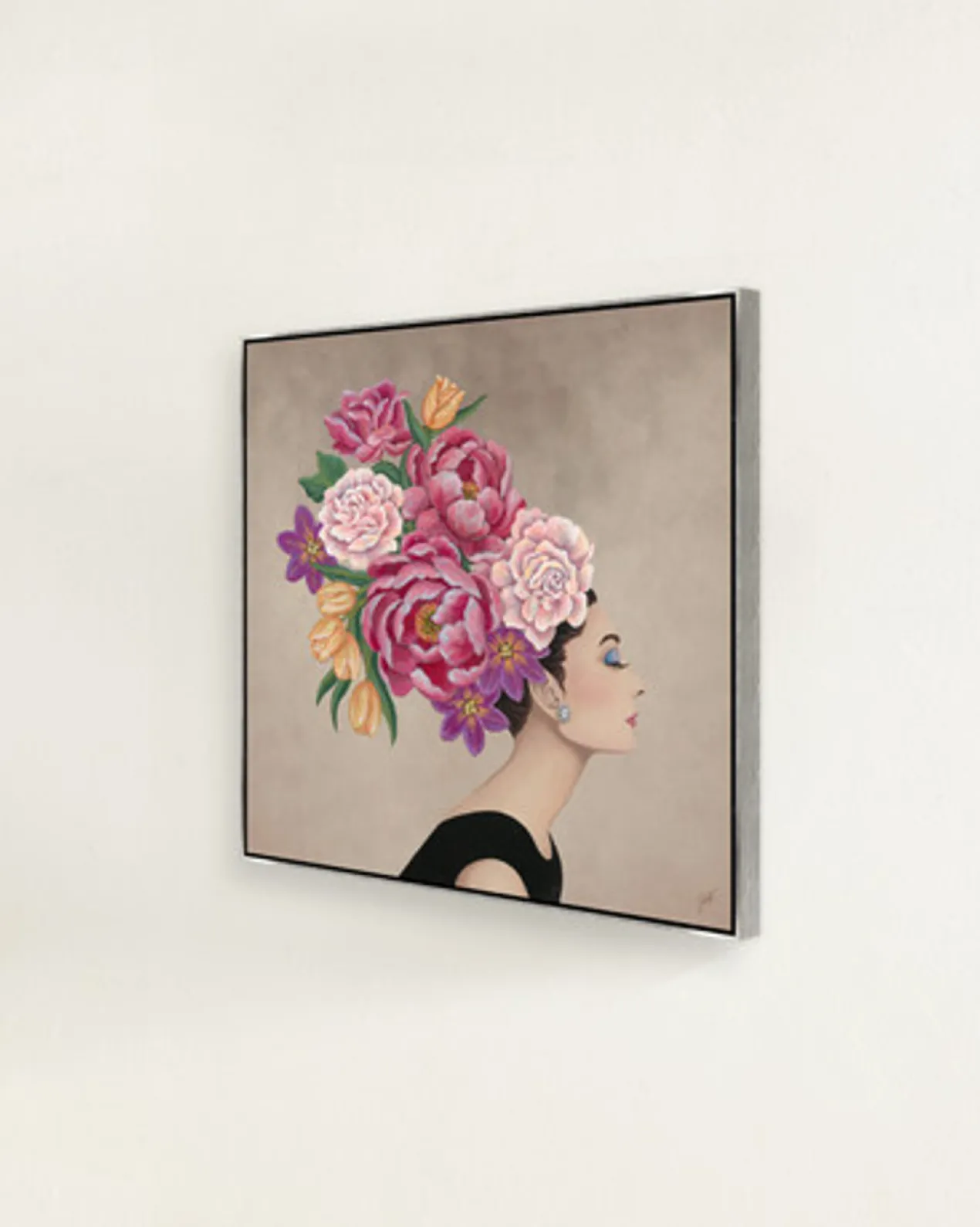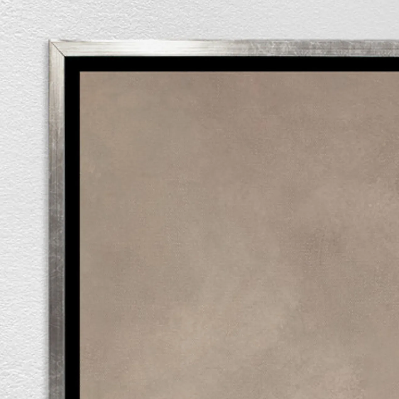 Gallery-wrapped canvas with hand-applied image brush gel finish. Set in a silver floater frame.