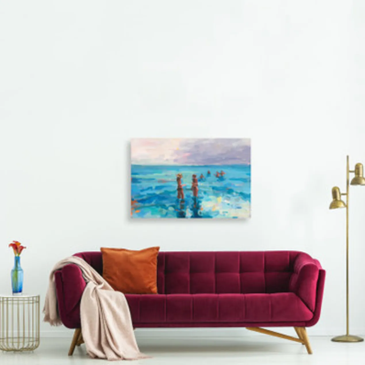 Gallery-wrapped canvas with hand-applied image brush gel finish.