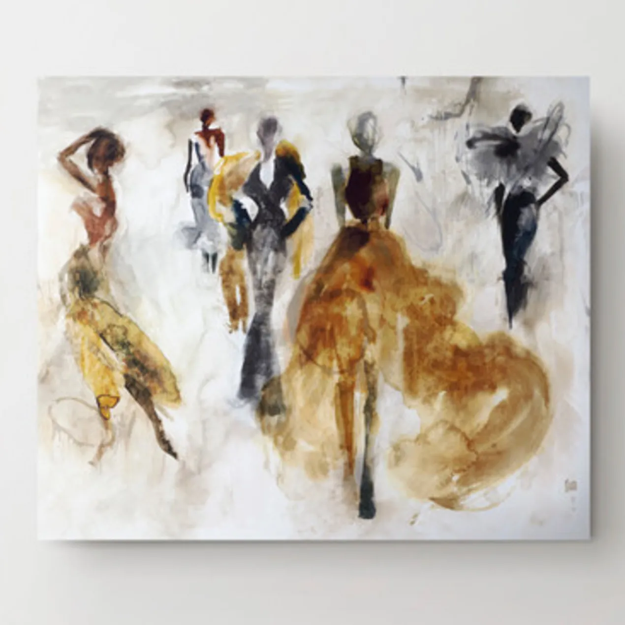 With use of vibrant colors and effortless style, Catwalk embodies the world of high fashion. Highlighting stunning ensembles, statuesque abstract models, shown as dark silhouettes, are juxtaposed against bold hues of color, emphasizing the flowing outfits as the focal point. Infusing its surroundings with vivid color, Catwalk was created as a fashion forward piece with modern flair.