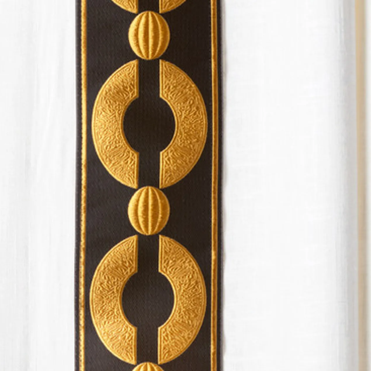 Made from linen-blend fabric for a lovely drape and rich texture, our customizable Chloe Border Panel is offered in four lengths (84”, 96”, 108”, or 120”), two header styles (rod pocket or inverted pleat), and two lining options (single privacy lining or lining and thermal interlining) to fit your space. Choose from seven tape borders—detailed with plush velvet appliqués, jacquard weaving, and embroidery—in classic yet refreshingly modern patterns that frame your windows in high style. Sold as a single panel.
