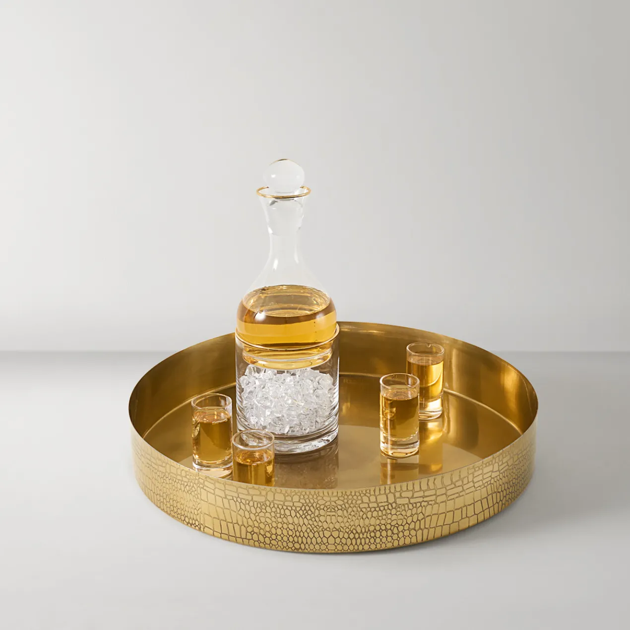 As versatile as it is gorgeous, this modern croc-embossed tray is perfect for serving guests in style or as a centerpiece for your bar or dining table.