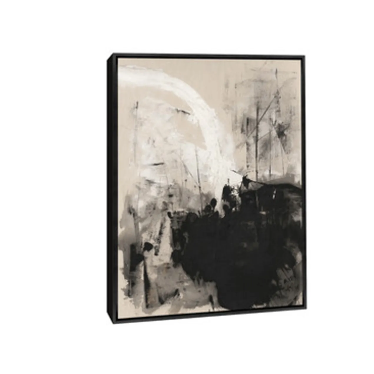 Gallery-wrapped canvas with hand-applied image brush gel finish. Set in a black floater frame.