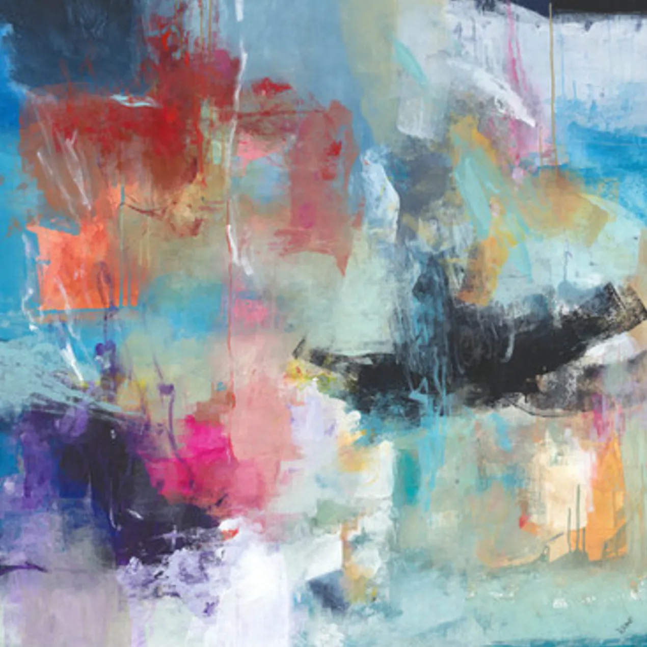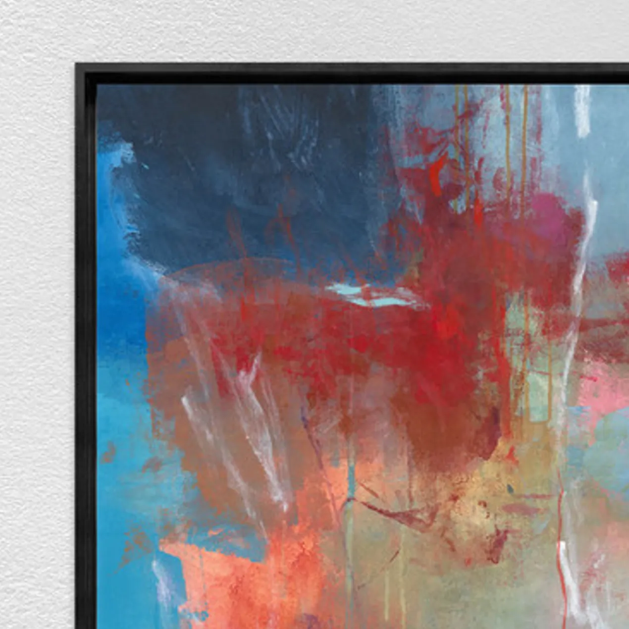 Gallery-wrapped canvas with hand-applied image brush gel finish. Set in a black floater frame.