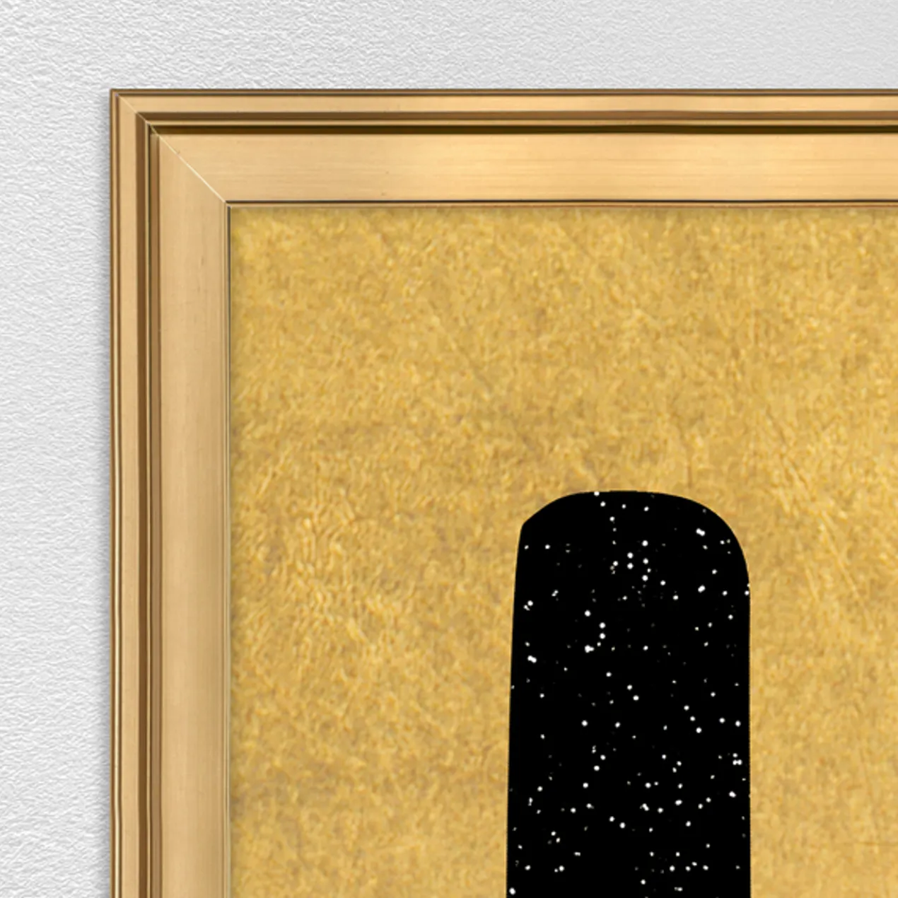 Flat mounted canvas with image brush gel finish. Set in a gold frame.
