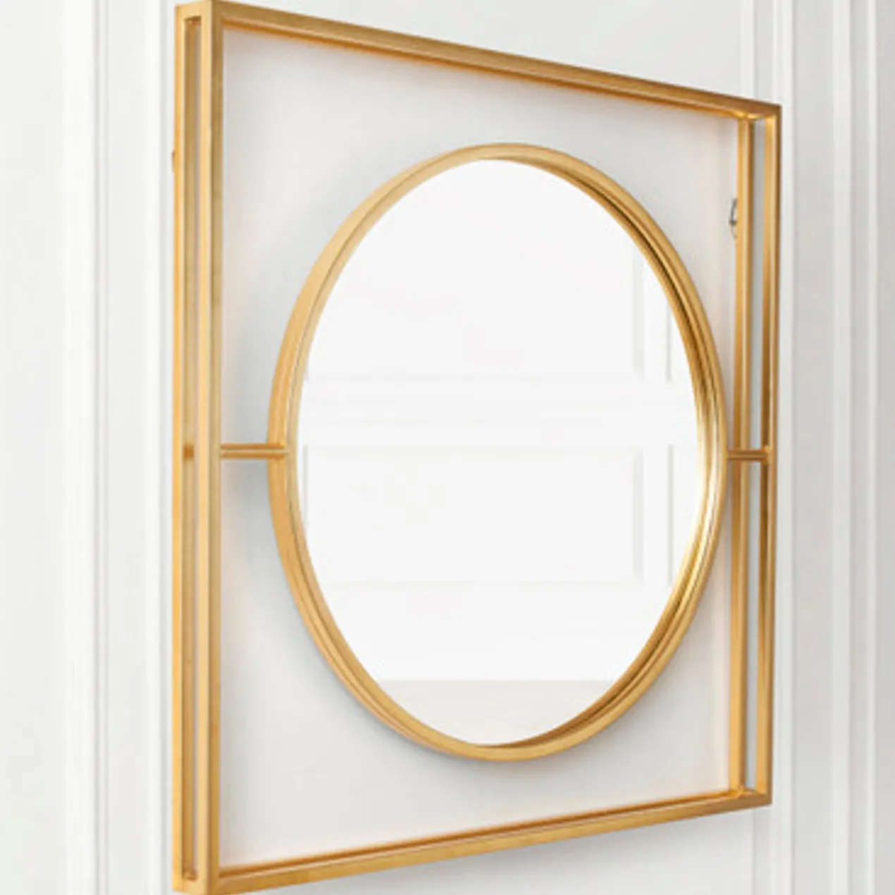 A standout addition to any space, this round mirror sits within a delicate square frame with a glam gold finish.