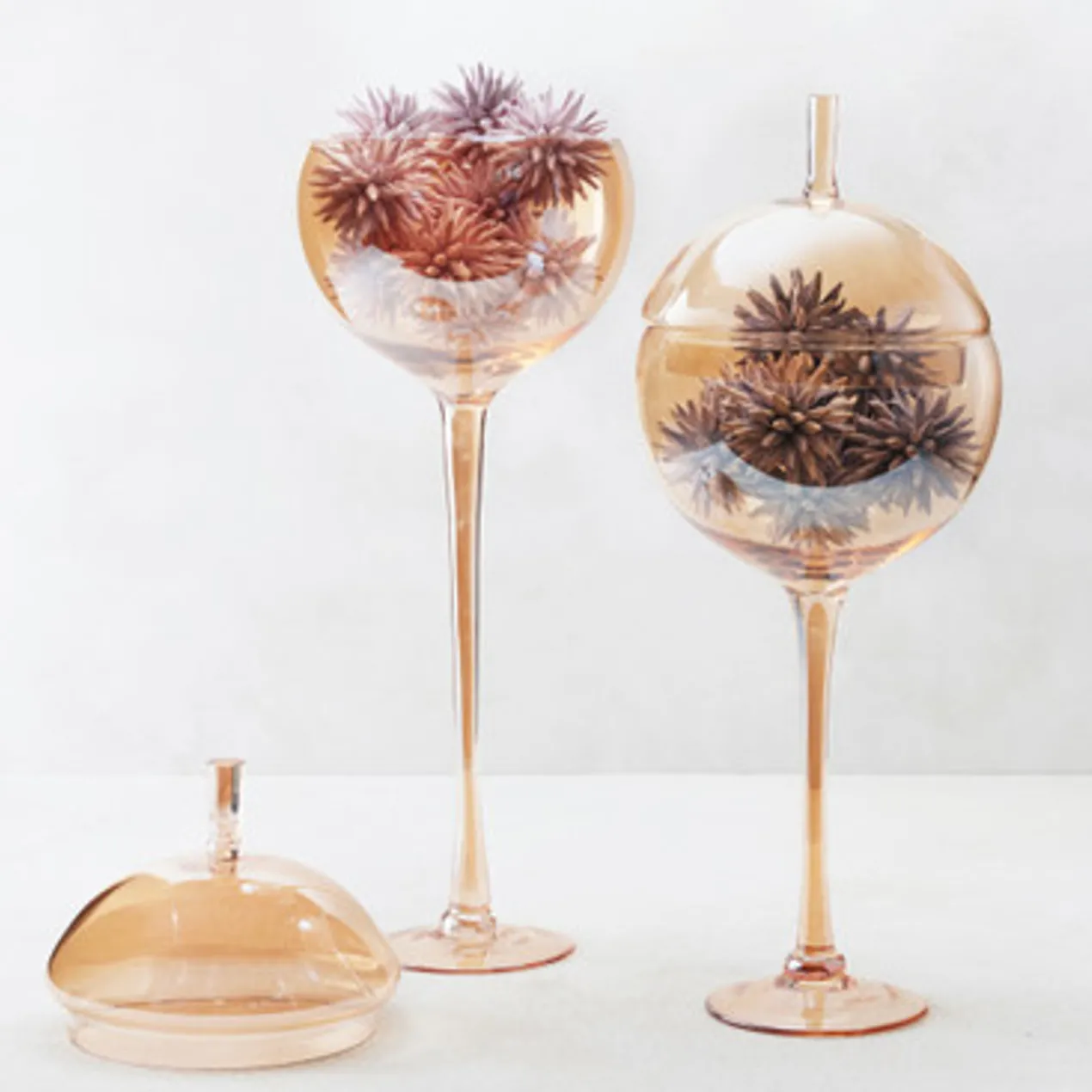 Made from mouthblown glass, this shapely terrarium adds another dimension to displays. The options are endless…place any object of sentiment inside and it becomes art. Available in two sizes.