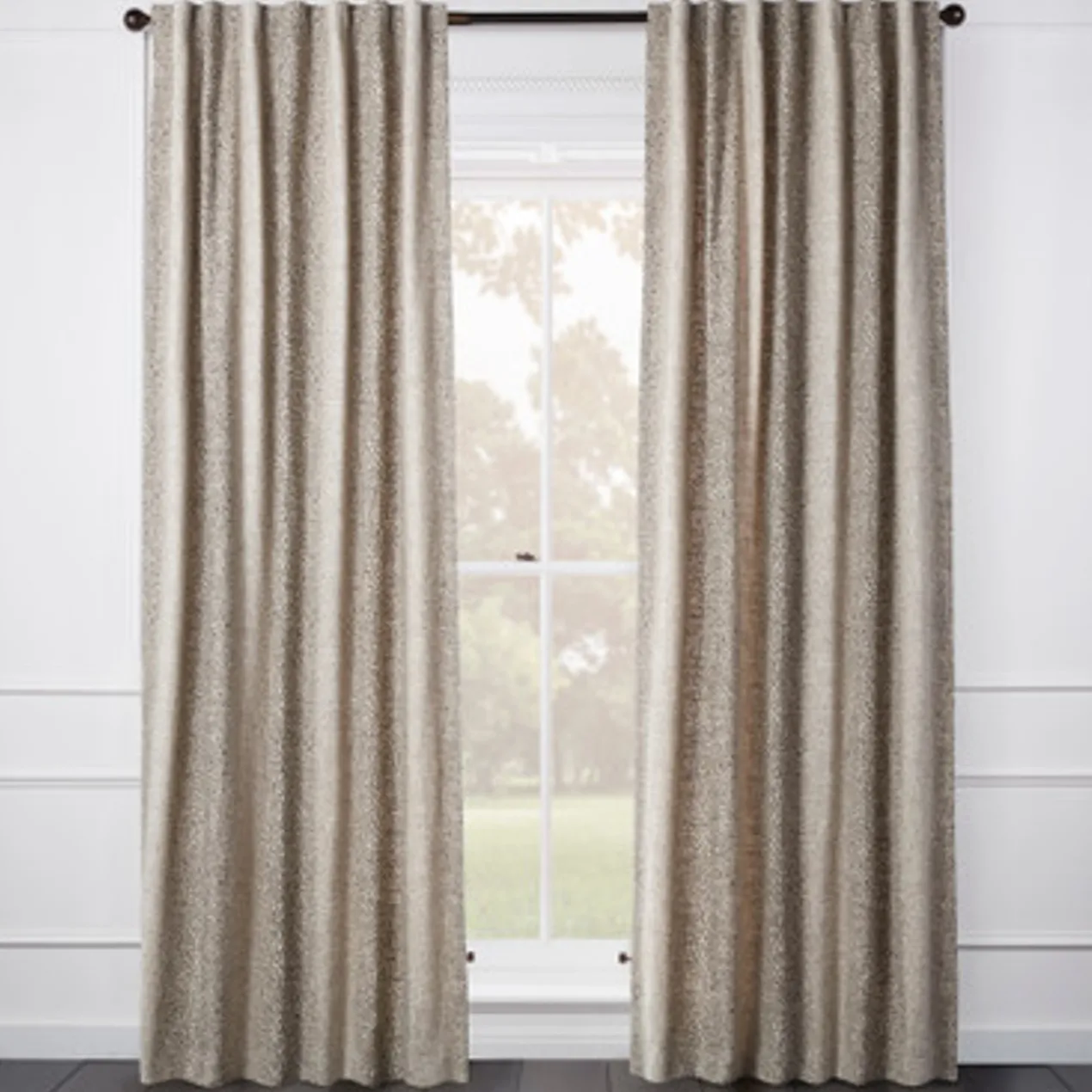 Made from heavily slubbed cotton with a leopard print, our Leo Panel enriches any interior with bold pattern and style. Customizable to fit your space, it’s offered in a single lining with four lengths (84”, 96”, 108”, or 120”), two header styles (rod pocket or inverted pleat), and two colorways (golden bronze or charcoal grey). Panel includes lining. Sold as a single panel.