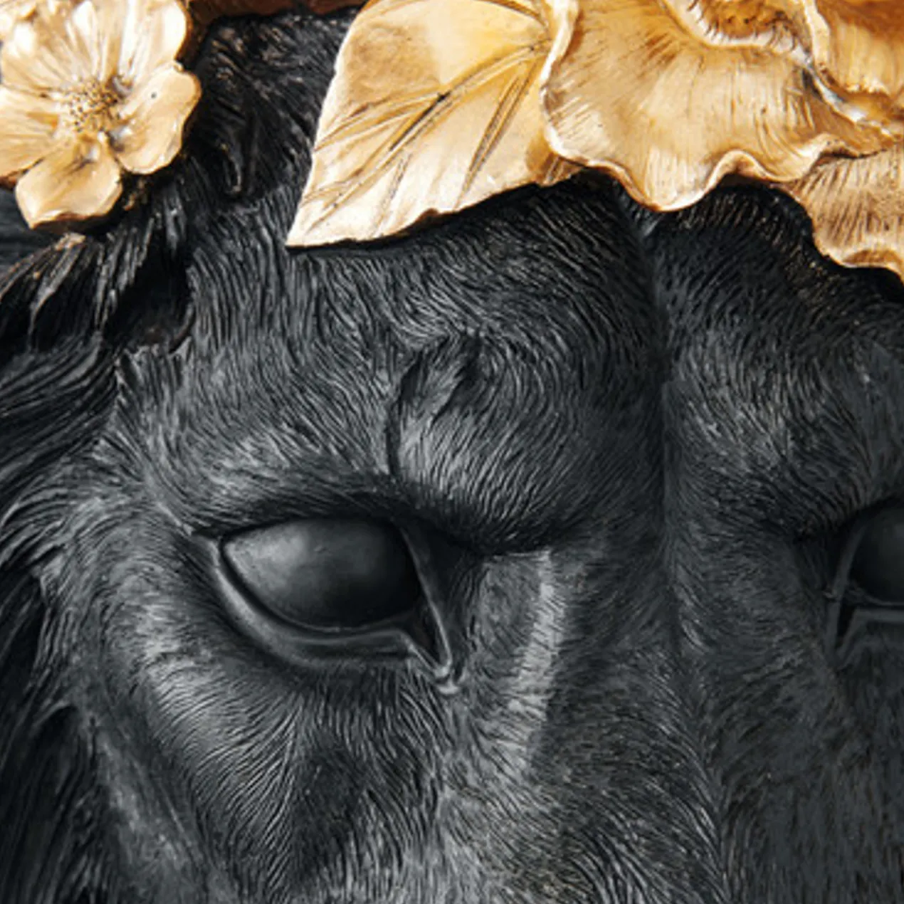 Our Leon Coronado Plague reigns the room. Crowned with an ornate metallic gold crown, this matte black lion is easily your most dramatic wall-hanging ever. Designed in lightweight resin, so it hangs easily just about anywhere.