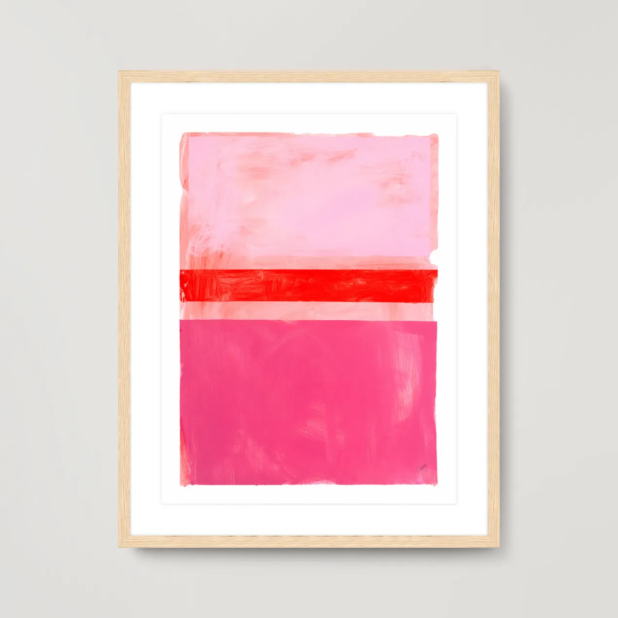 Image printed on artist paper floating on white matboard under acrylic glass and encased in a natural frame.