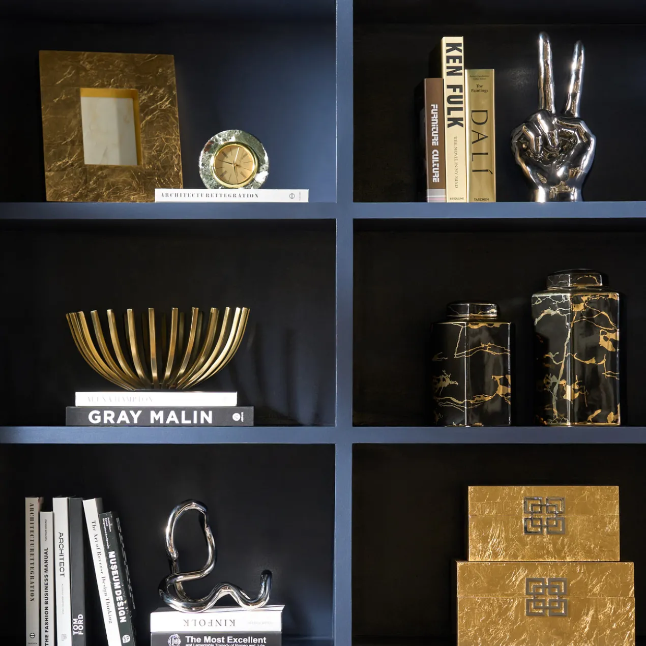 An elegant addition to a tabletop display, this hexagonal canister is crafted of ceramic with a swirling, marble-inspired finish.