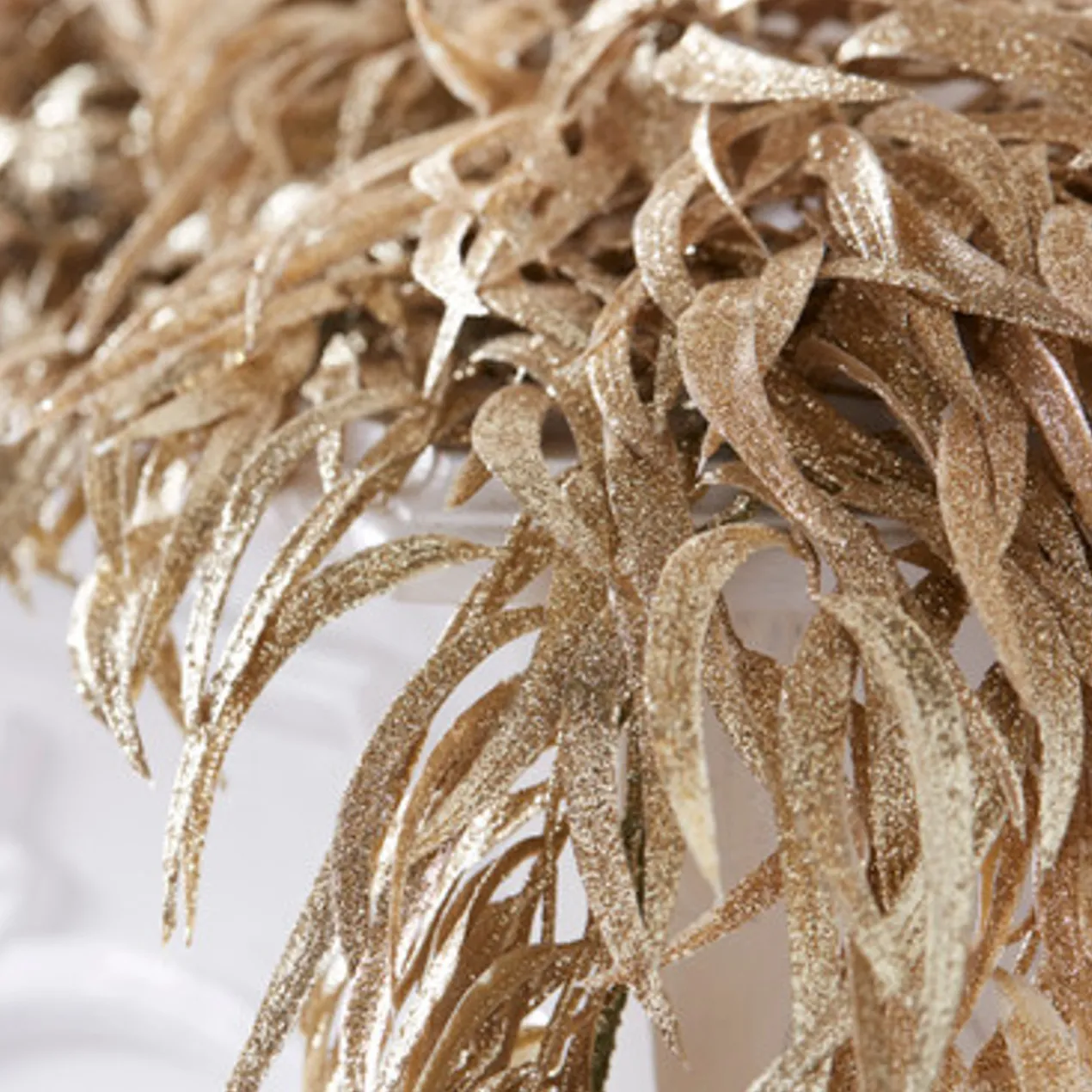Featuring a metallic gold finish, this faux-eucalyptus garland adds a festive touch to the doorway, mantel, or banister.
