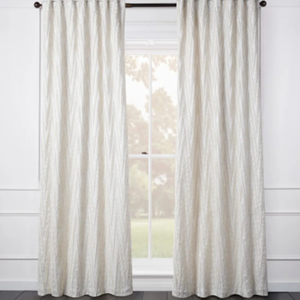 Featuring a highly textured chevron design, our Minka Panel enriches any interior with bold pattern and style. Customizable to fit your space, it’s offered in a single lining with four lengths (84”, 96”, 108”, or 120”), two header styles (rod pocket or inverted pleat), and three colorways (grey, natural, or pearl). Panel includes lining. Sold as a single panel.