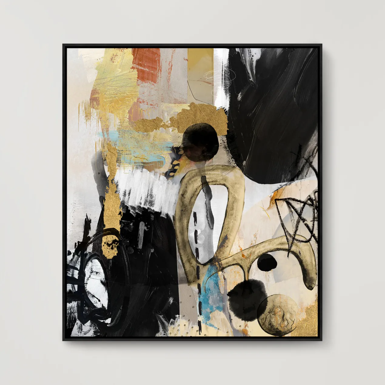 Gallery-wrapped canvas with gilded gold accents and hand-applied image brush gel finish.