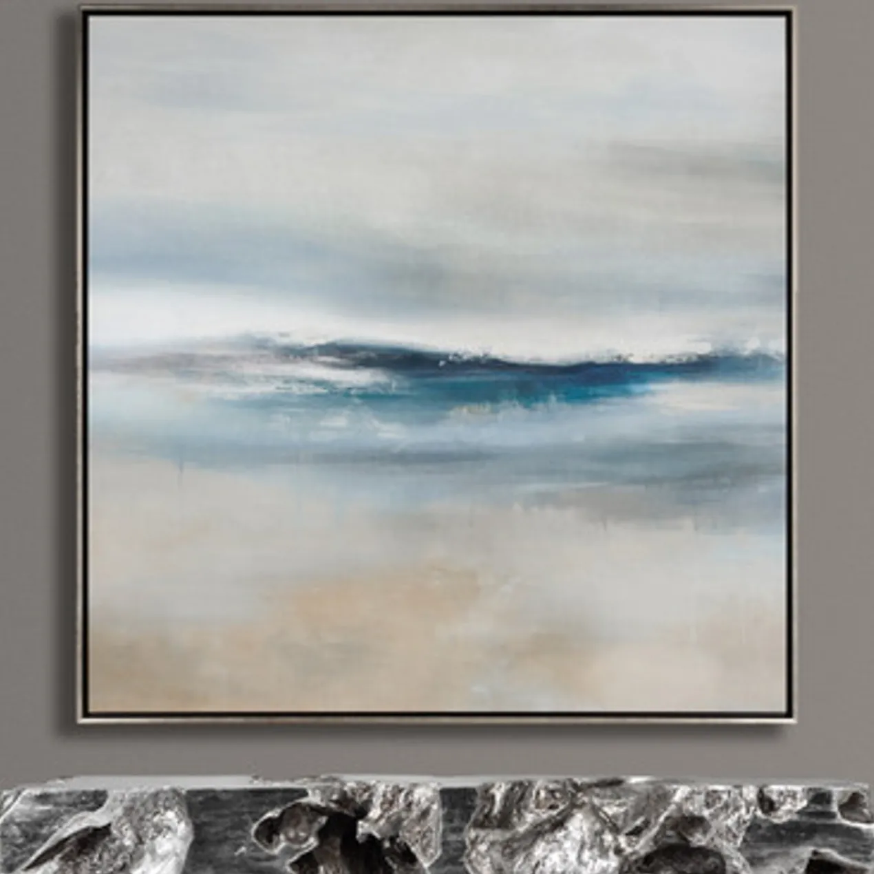 Rendered with a hazy, atmospheric quality, this abstraction of a seascape from artist Mari Urasawa adds a serene, modern note to any space. Printed on gallery-wrapped canvas with an image brush gel finish for added texture, this piece is displayed in a silver floater frame.