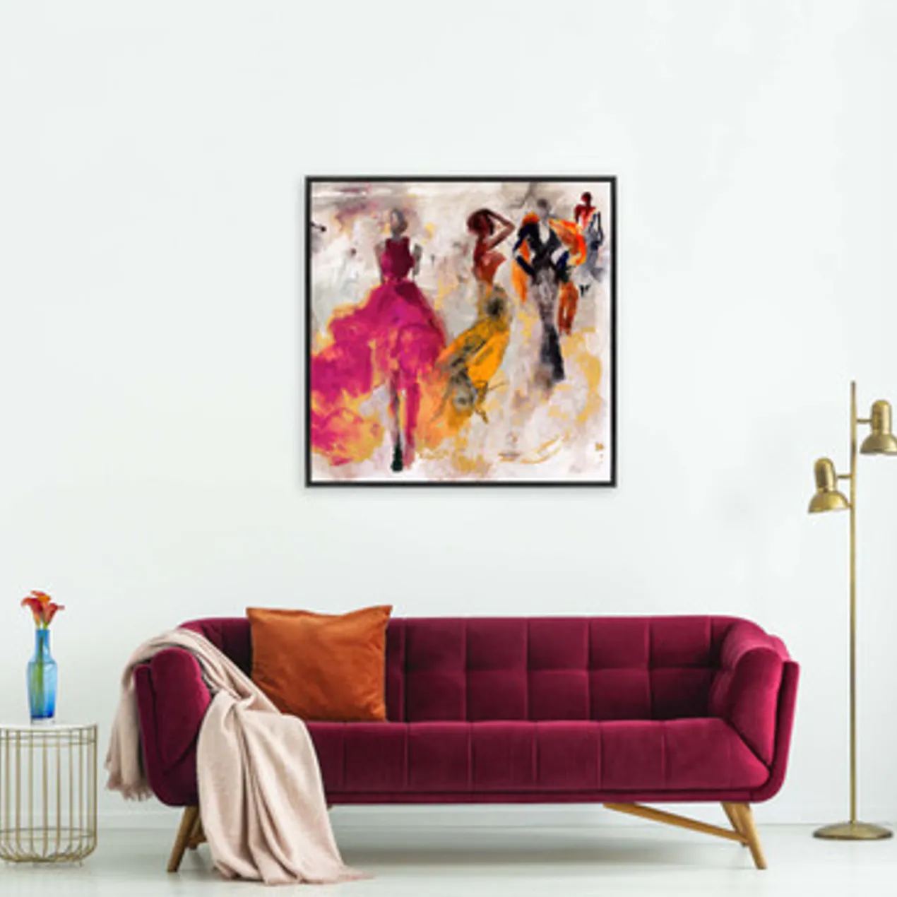 Gallery-wrapped canvas with hand-applied image brush gel and gold gilding. Set in a black floater frame.