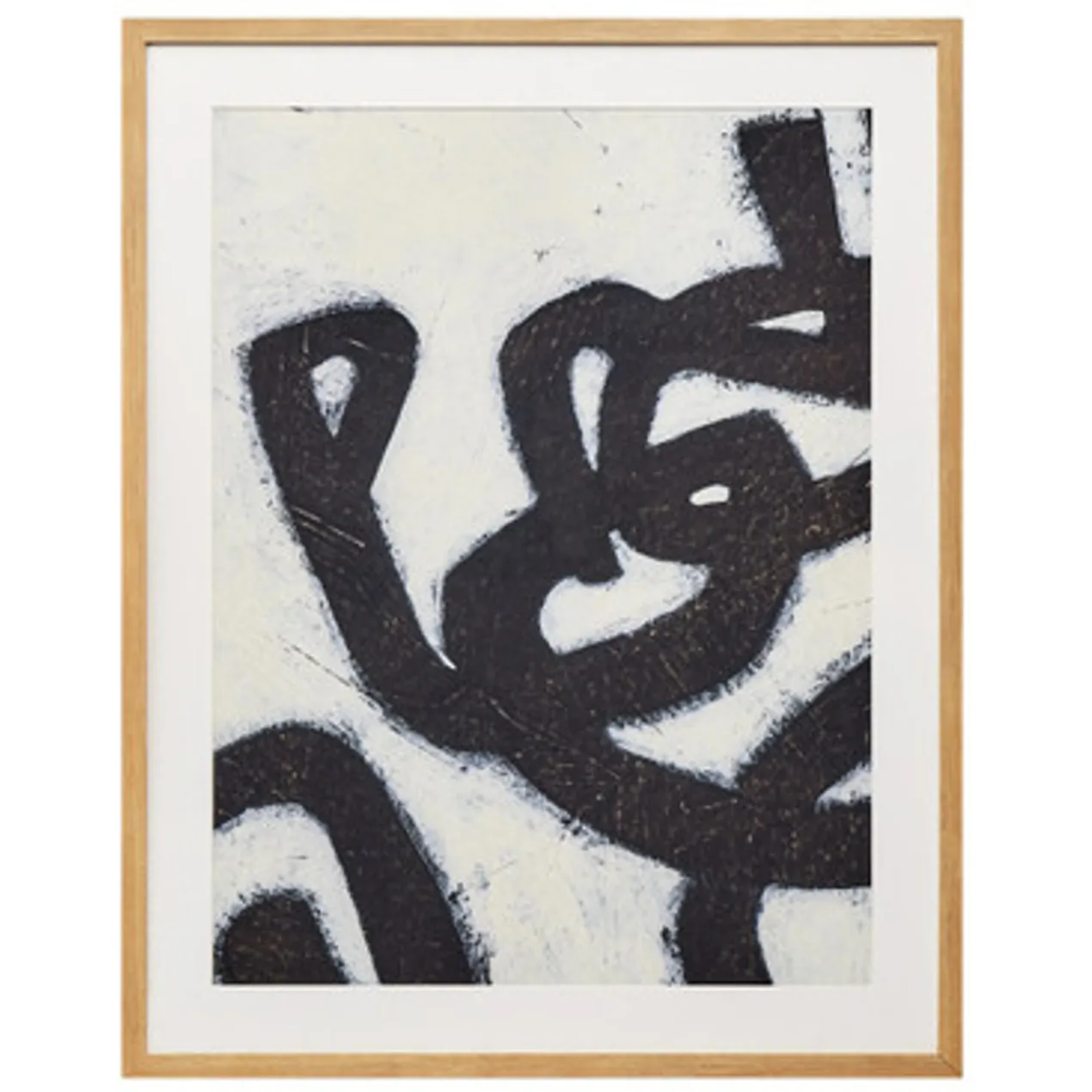 Bold in black and white, this abstraction from artist June Erica Vess is ideal for bringing a modern note to your wall. Printed on paper, this piece is matted and displayed in a natural wood frame.