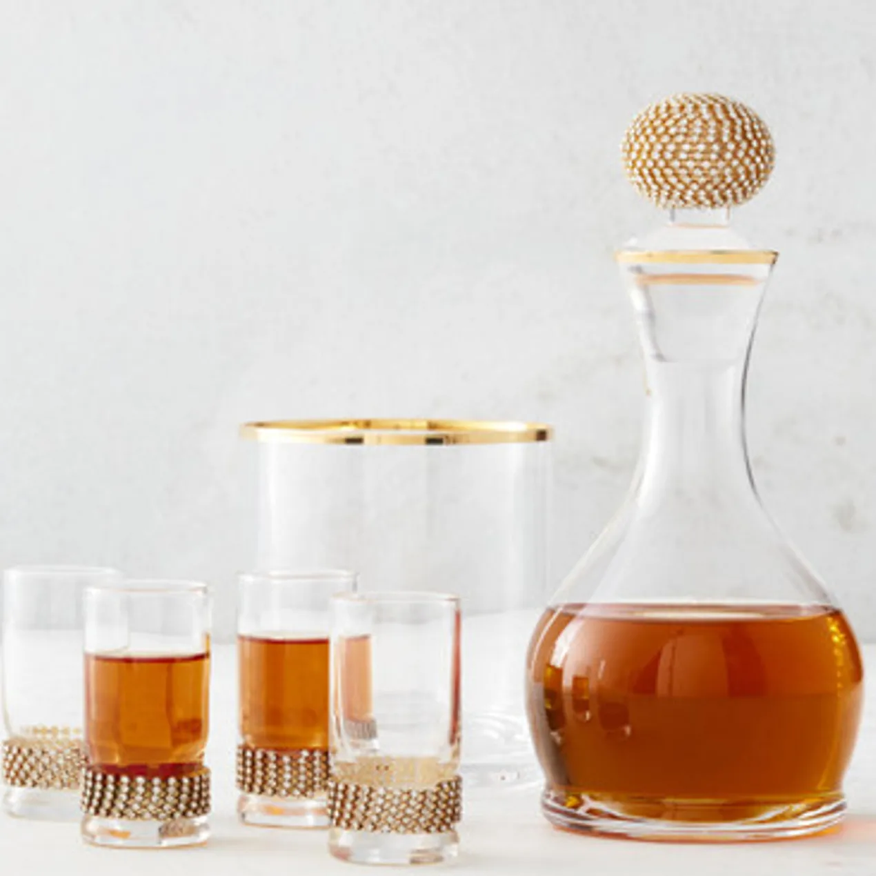 Elevate your beverage service with these glam Gift Sets from the much-loved Victoria collection. Our new take on a tabletop classic features hand-blown glass and beading for extra glitz.