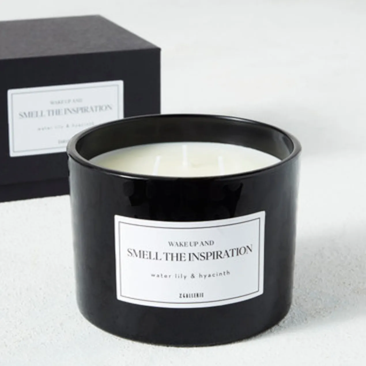 Presented in a black glass vessel with a tonal leopard print and sassy saying, this triple-wick candle features a refreshing water lily and hyacinth scent and arrives in a handsome box, ready for gifting.