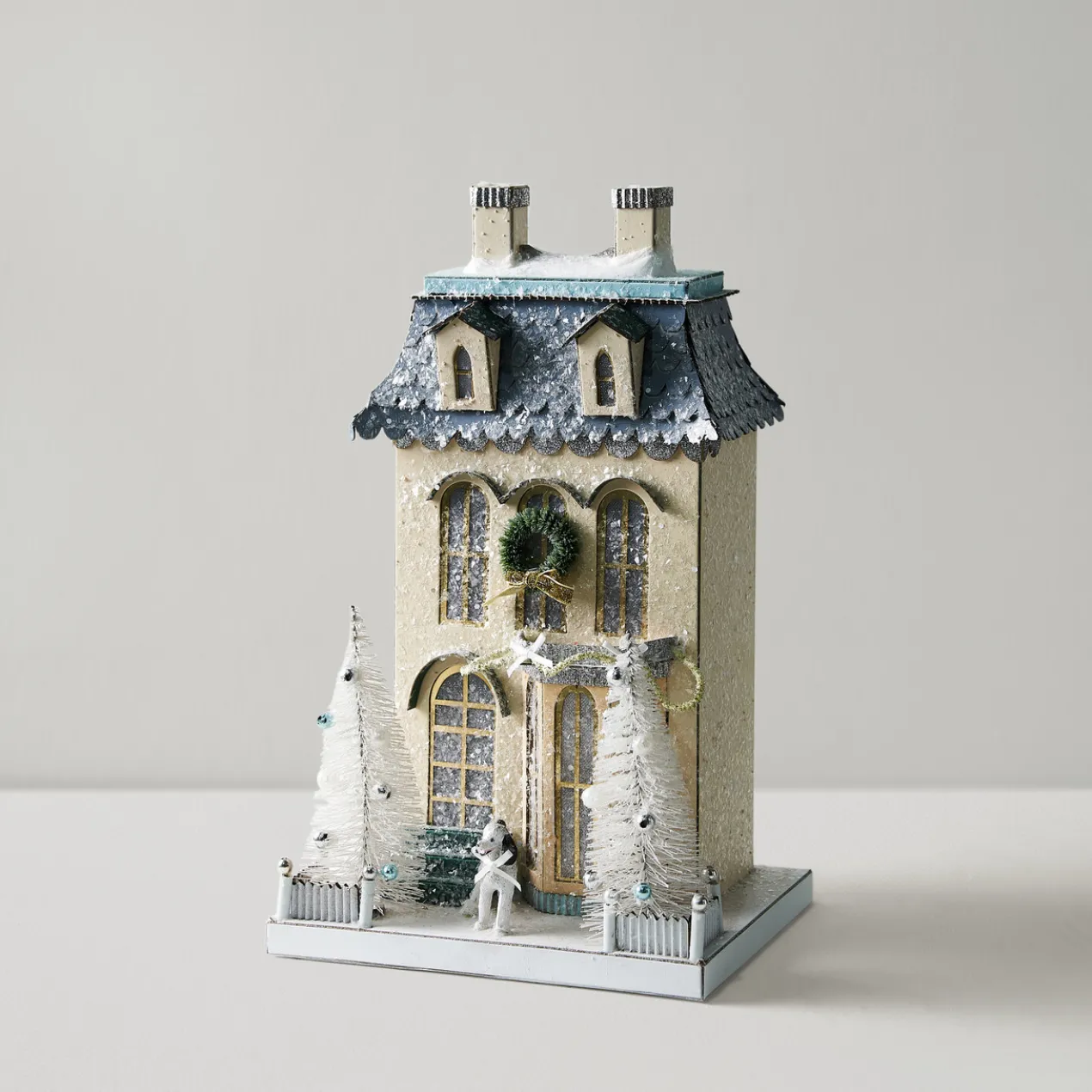Set the scene with this stunning winter chateau Adorned with glitter and the most perfect details, this house will make the perfect additional to any surface.